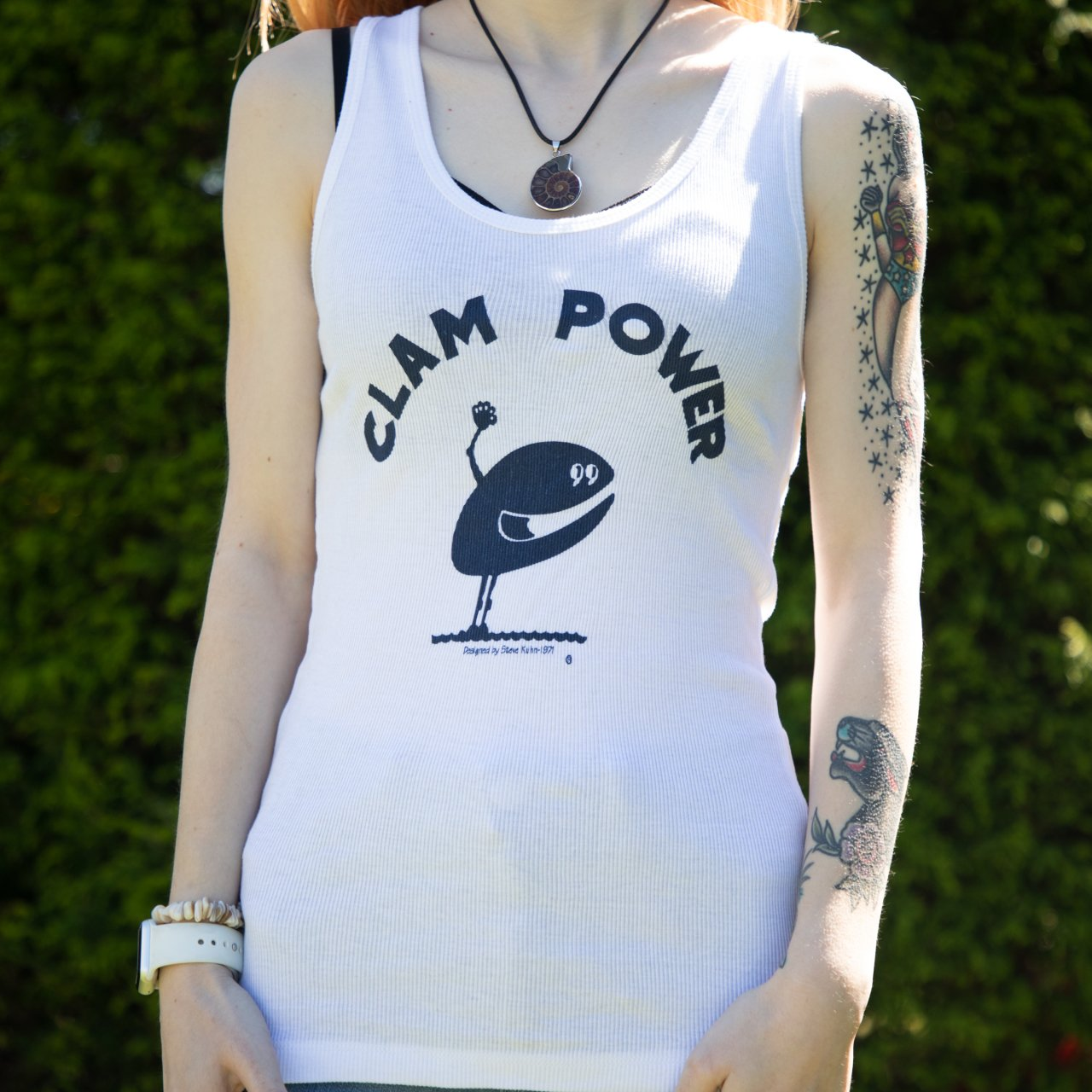 The original Clam Power T-shirt was created in 1971 by Steve Kuhn, a local Sayville clammer.
